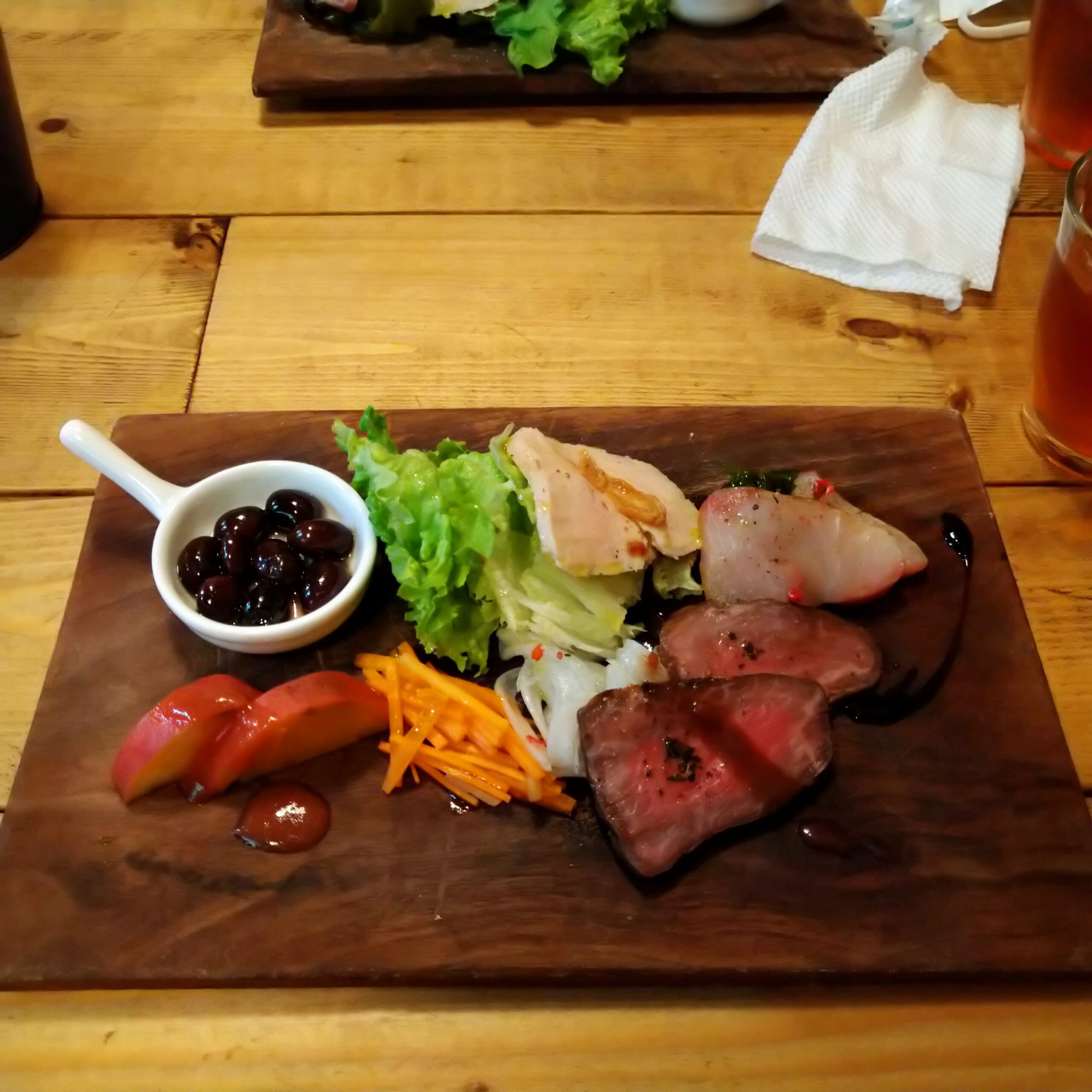 しっとり鶏の胸肉、ローストビーフにお刺身